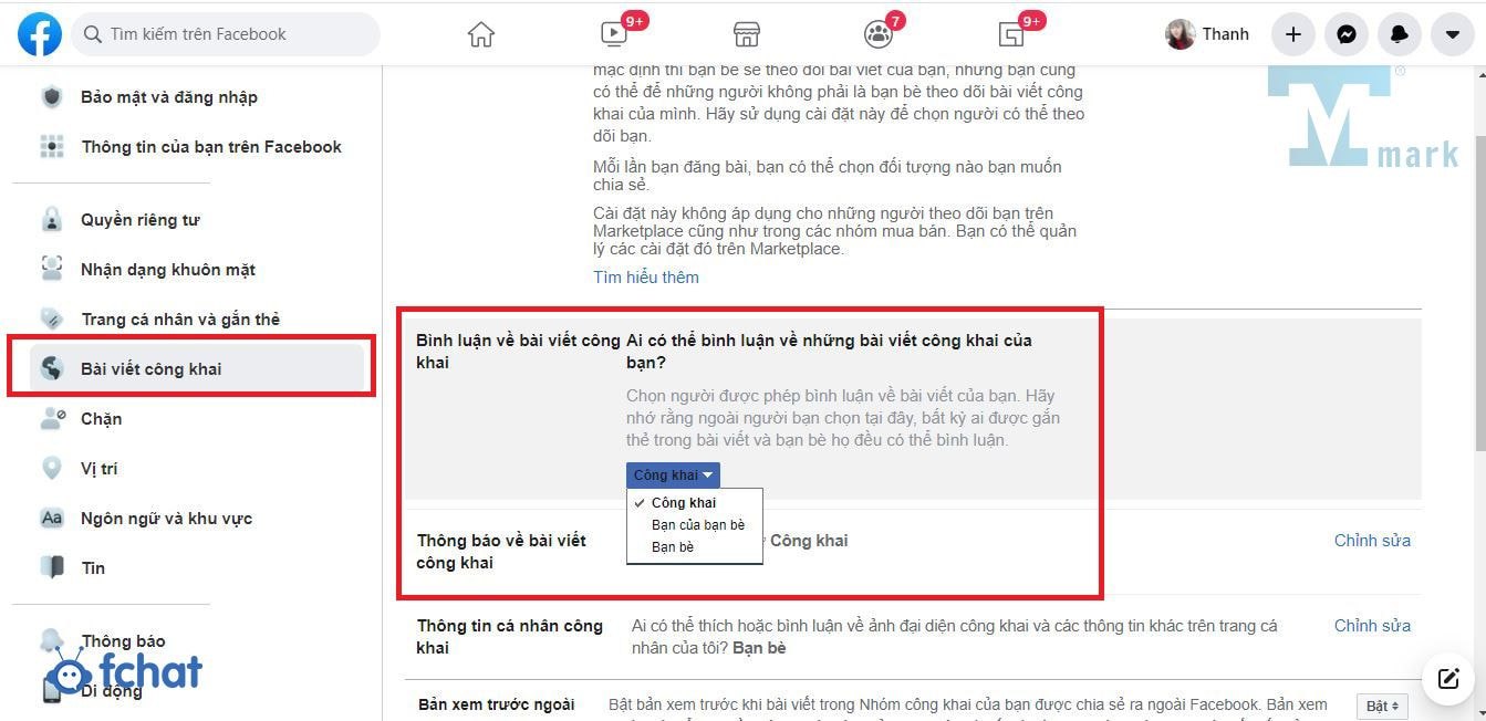 • Bước 6: Bỏ chọn mục “Ai cũng có thể bình luận về các bài viết công khai của bạn”.