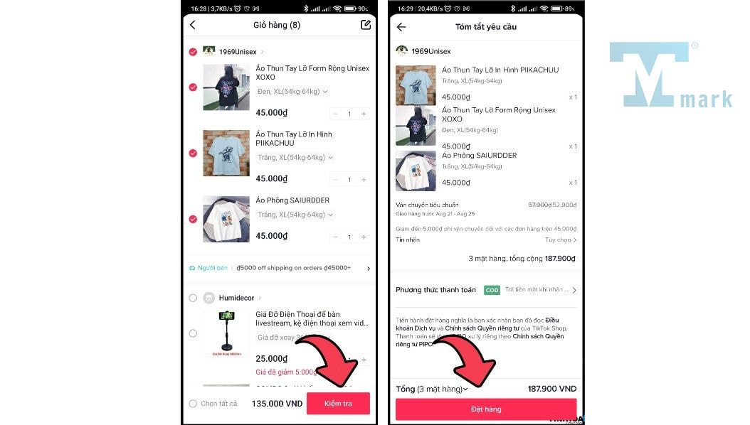 Bước 3: Cách thanh toán giỏ hàng trên tiktok