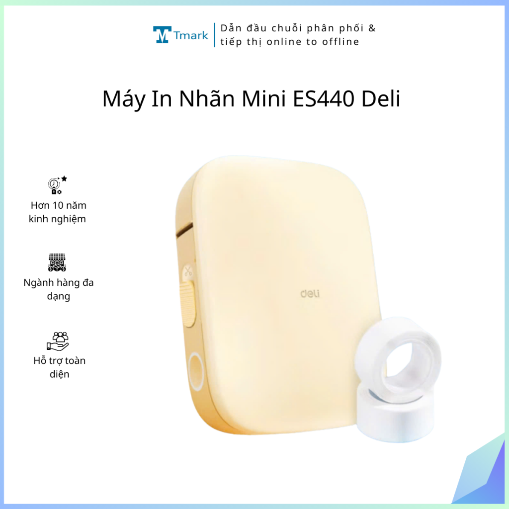 Máy In Nhãn Mini ES440 Deli, Máy In Nhiệt Cầm Tay Bluetooth In Tem Nhãn, Logo, Sticker Không Cần Mực