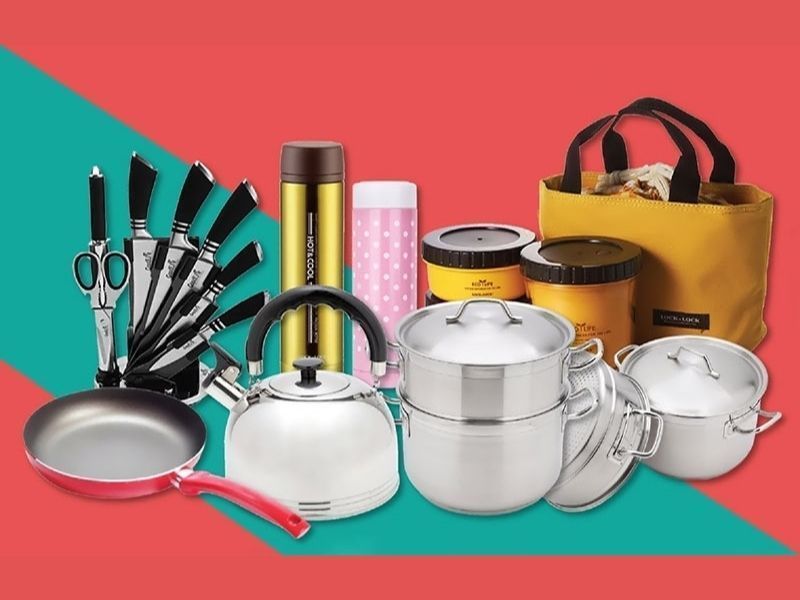 - Hàng tiêu dùng: cốc, tách, ấm, chén, bàn chải, dao, nồi, chảo…