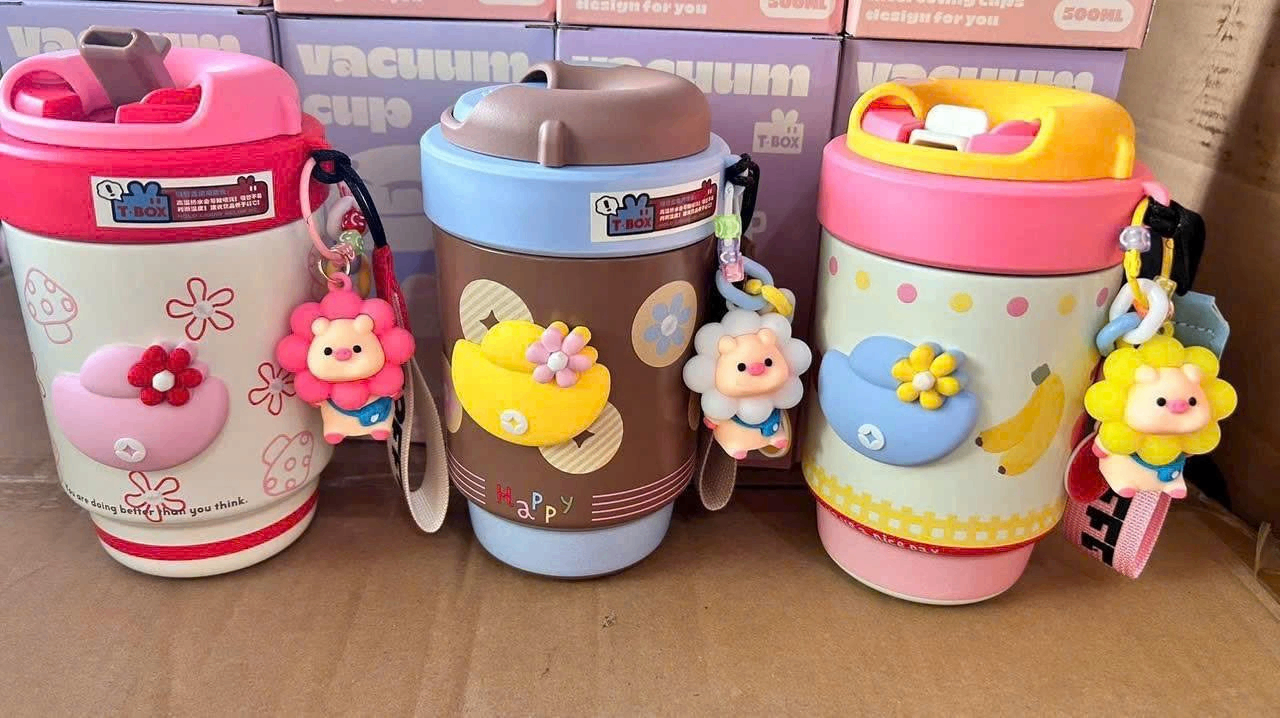 Bình đựng nước giữ nhiệt cute kèm dây charm (Kiện 60 cái)