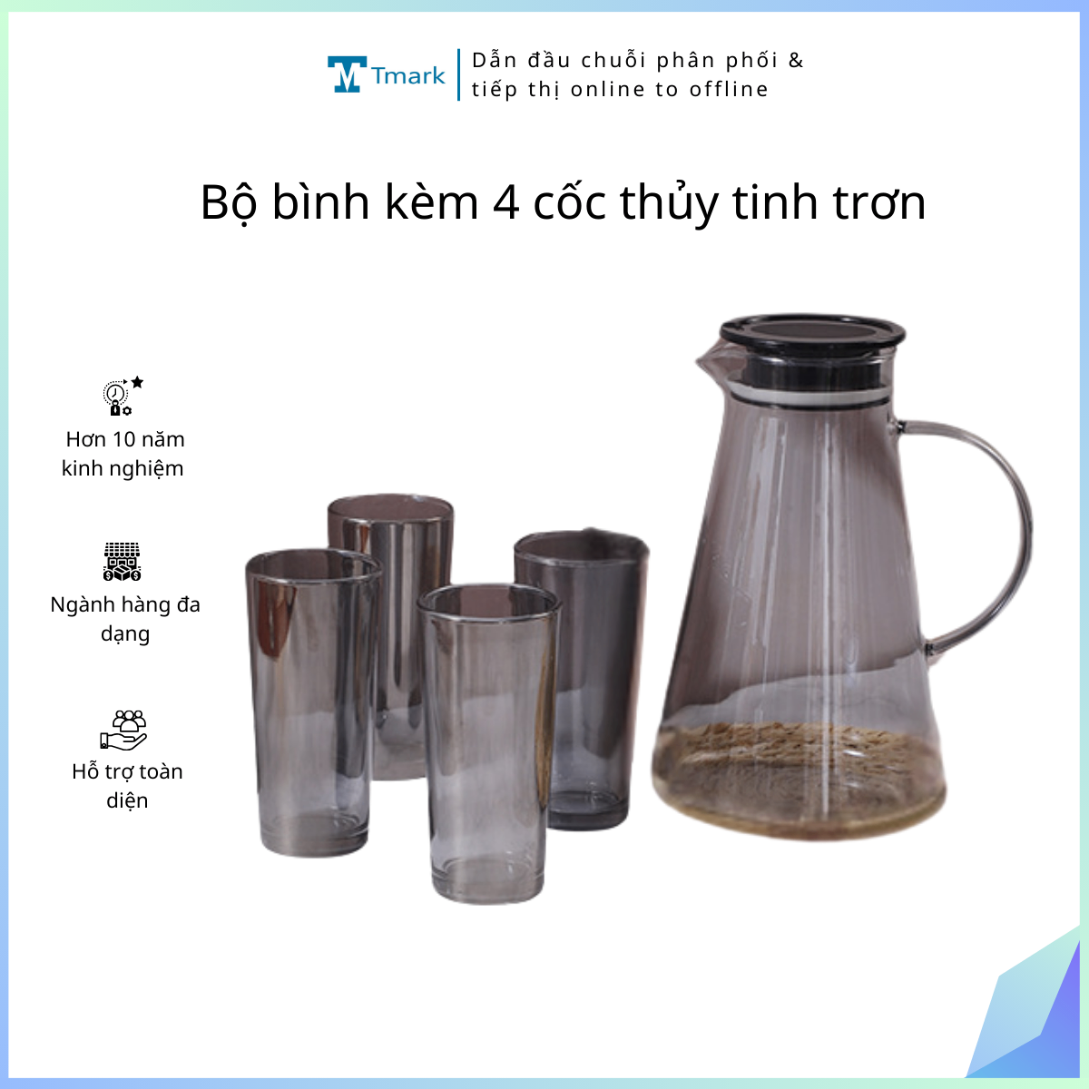 Bộ bình kèm 4 cốc thủy tinh trơn (Kiện 12 bộ)