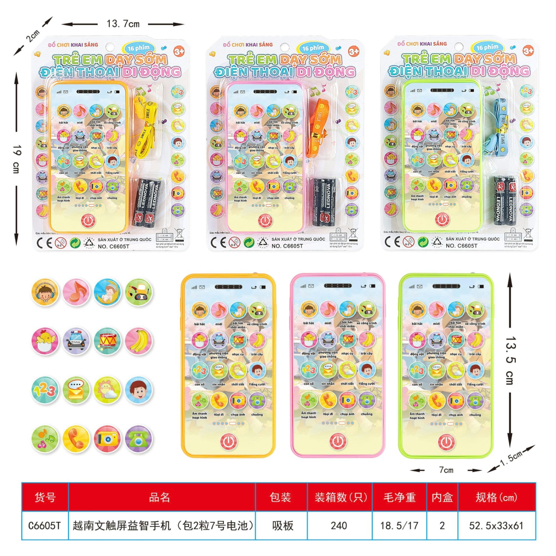 Đồ chơi trẻ em điện thoại 16 phím tiếng việt ( Kiện 240 cái)