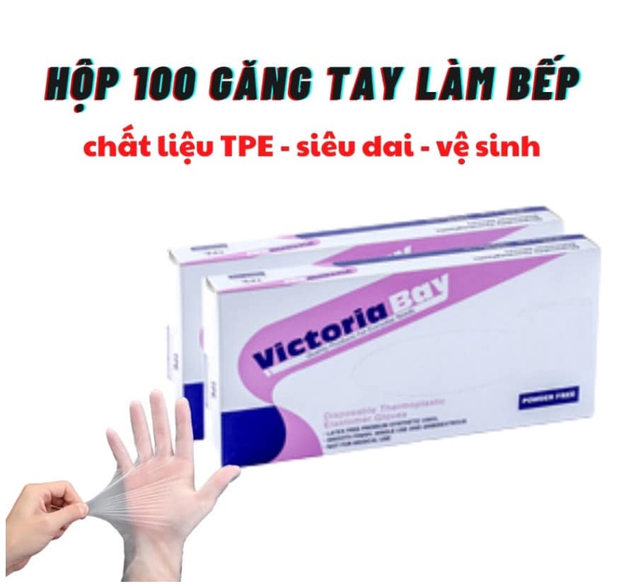 [GĂNG TAY TPE] Hộp 100c Găng tay TPE Victoria Bay – Găng tay y tế, làm bếp không bột TPE siêu dai, trợ thủ đắc lực cho nội trợ
