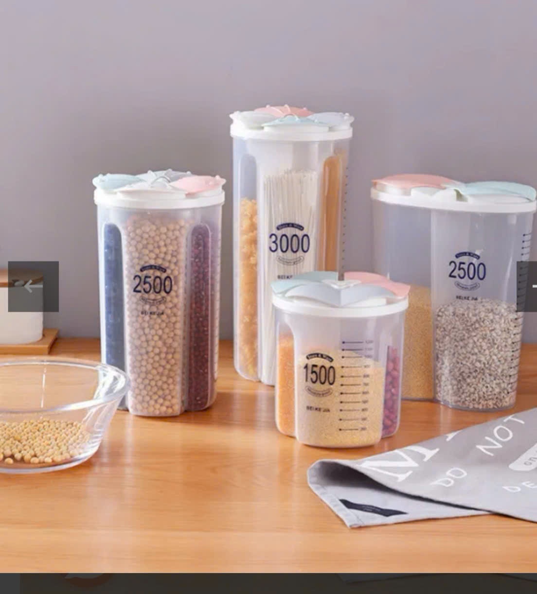 - Hộp đựng ngũ cốc nhiều ngăn giúp dễ phân loại, lấy nhanh, tránh lẫn mùi.