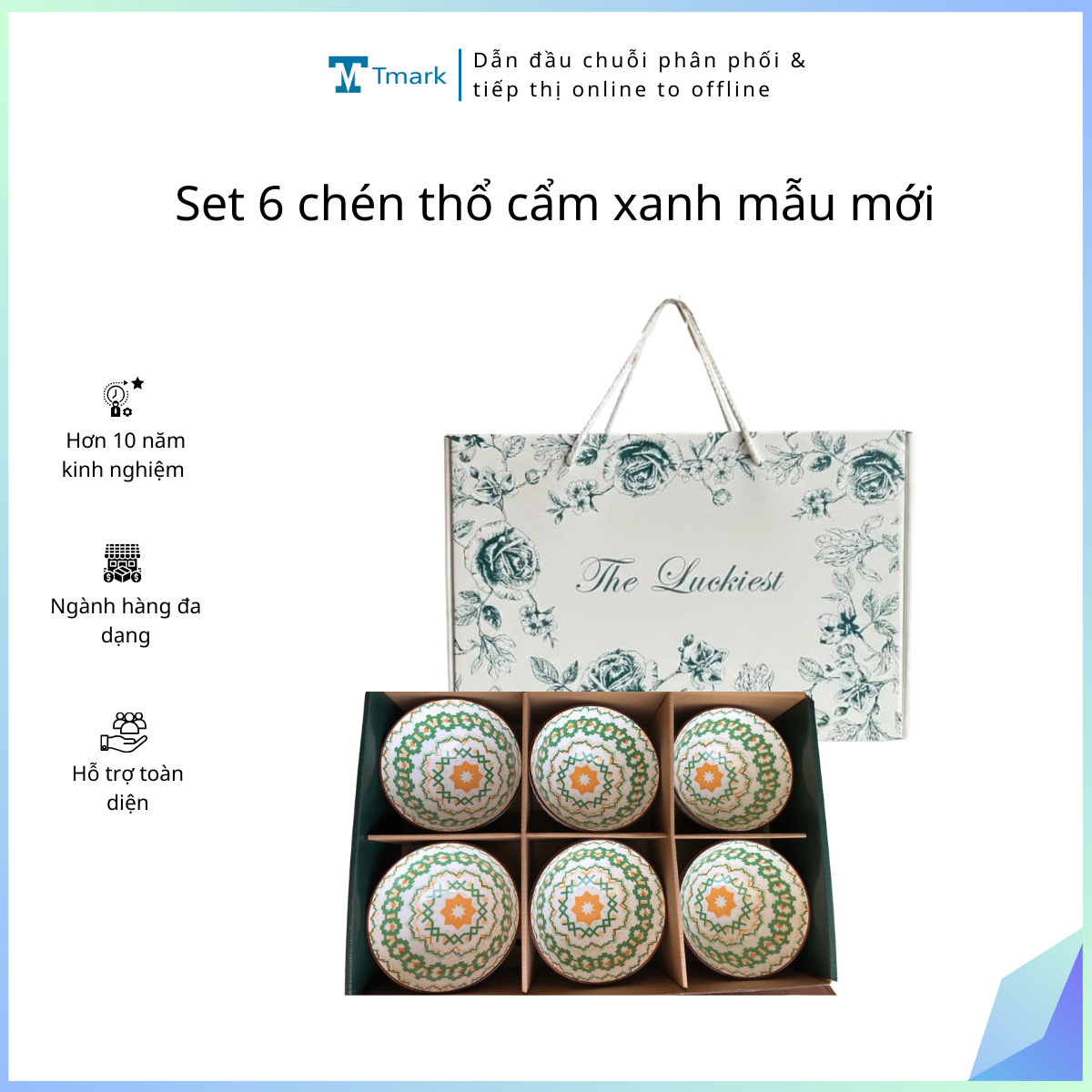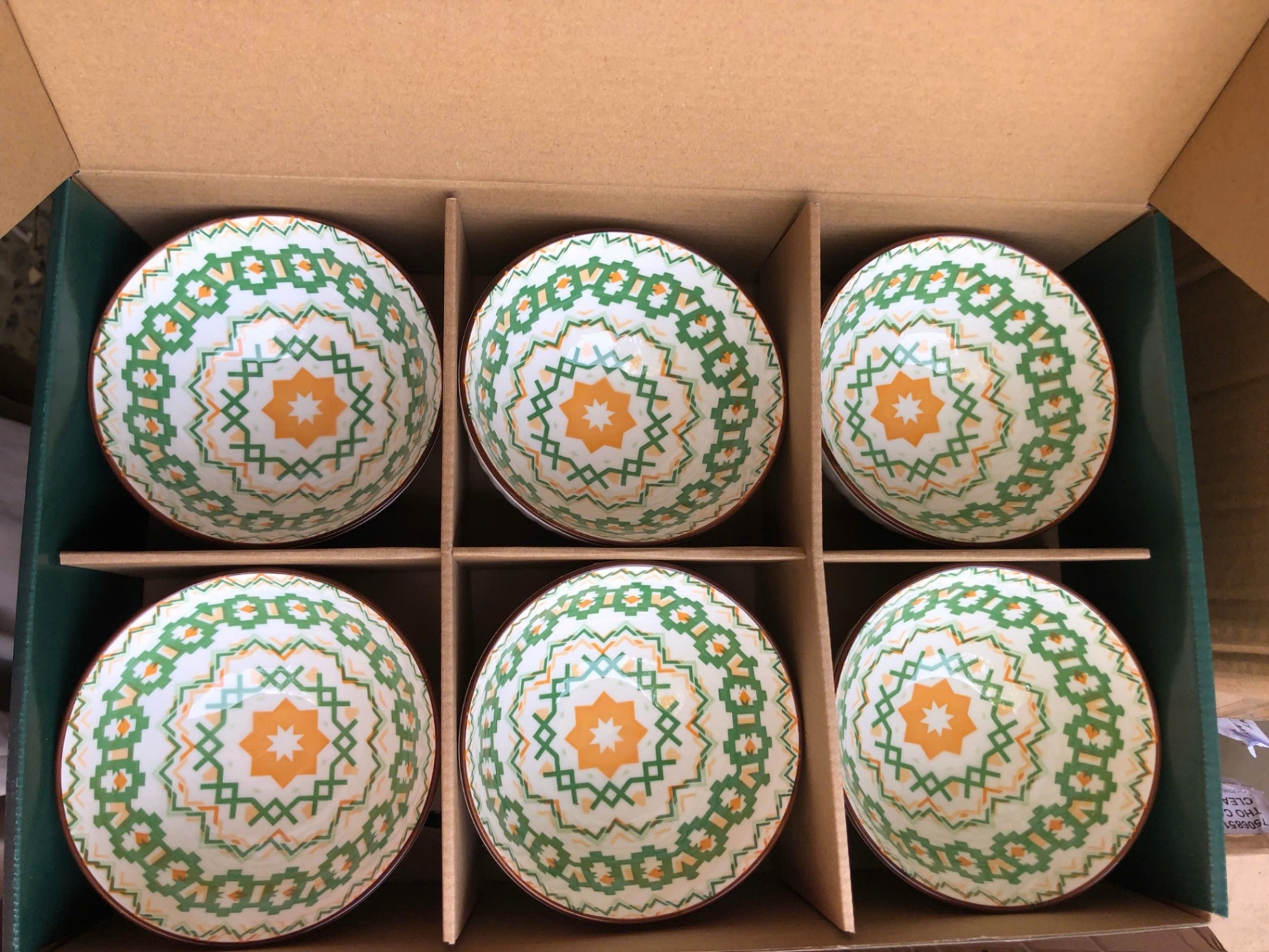 Set 6 chén thổ cẩm xanh mẫu mới (Kiện 14×3 bộ)(Hàng nguyên kiện)