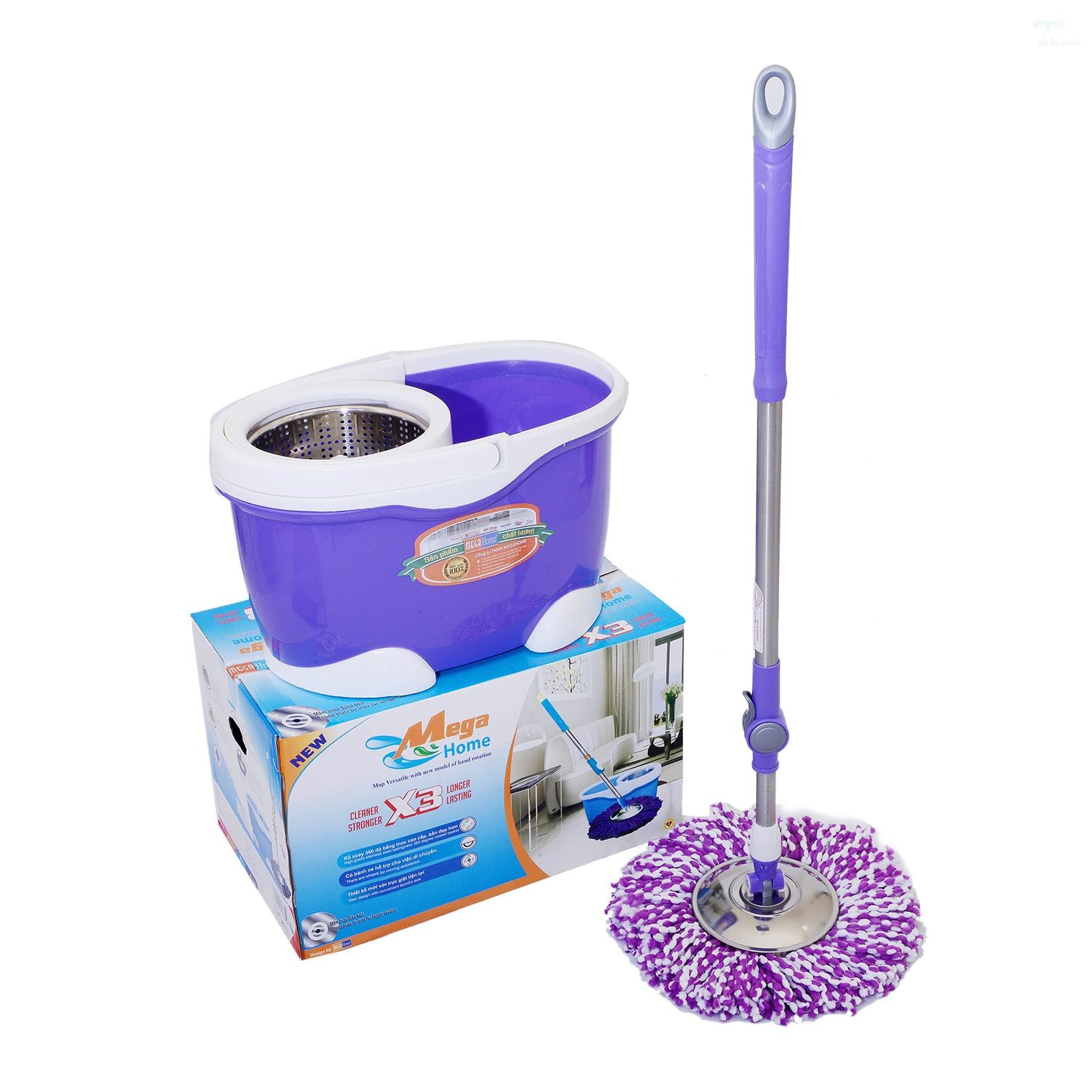 Thùng lau nhà là một bộ sản phẩm gồm một thùng chứa nước, một cây lau nhà có đầu lau có thể xoay 360 độ và một bàn xoay để vắt khô đầu lau. Thùng lau nhà có thiết kế đơn giản nhưng thông minh, giúp bạn lau nhà một cách dễ dàng và nhanh chóng. Bạn chỉ cần nhúng đầu lau vào nước, đặt lên bàn xoay và đẩy cây lau xuống để vắt khô. Sau đó, bạn có thể lau nhà mà không cần vắt tay hay cúi xuống. Thùng lau nhà còn có bánh xe và tay cầm để bạn có thể di chuyển dễ dàng và tiện lợi.